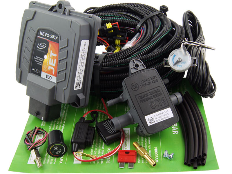 Innowacyjny i zaawansowany układ dedykowany jest do jednostek napędowych, wyposażonych w silnik z pośrednim wtryskiem paliwa. Sterownik wyposażony jest w zaawansowane opcje, które pozwalają dostroić układ zasilania LPG dokładnie do potrzeb.Zaprojektowany do zastosowania w samochodach posiadających zaawansowane systemy diagnozy układu zasilania benzyną (OBD2, EOBD) - z katalizatorem i sondami lambda zachowując normy emisji spalin KME NEVO-SKY Eco nalezy do linii produktów JET, współpracuje z oprogramowaniem NEVO-SKY. Elektronika obsługuje silniki benzynowe o liczbie cylindów do 4. W skład elektroniki wchodzi przełącznik DG8
