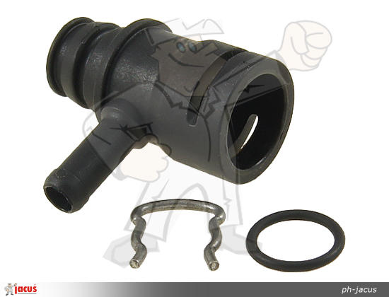 Plastikowy trójnik przyłączeniowy rozdzielacza gazu.